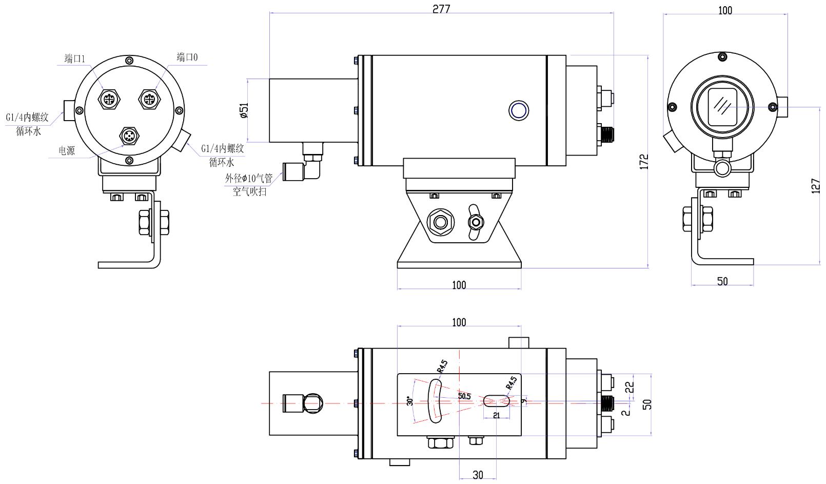 ● 测量精度<±1mm,分辨率0.1mm,重复性±0.5mm